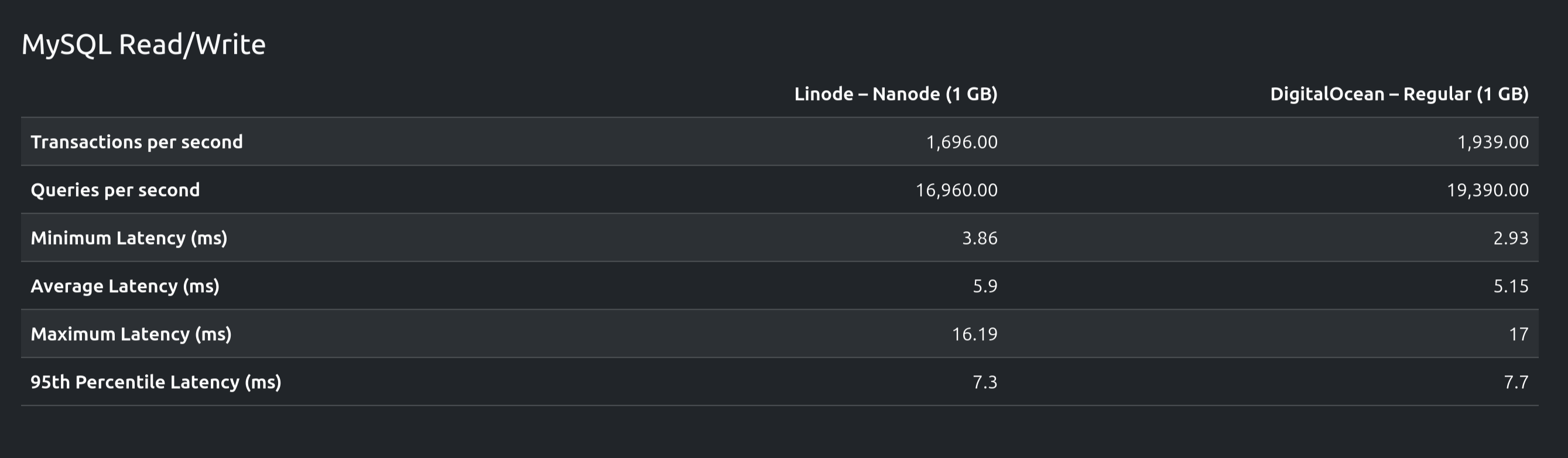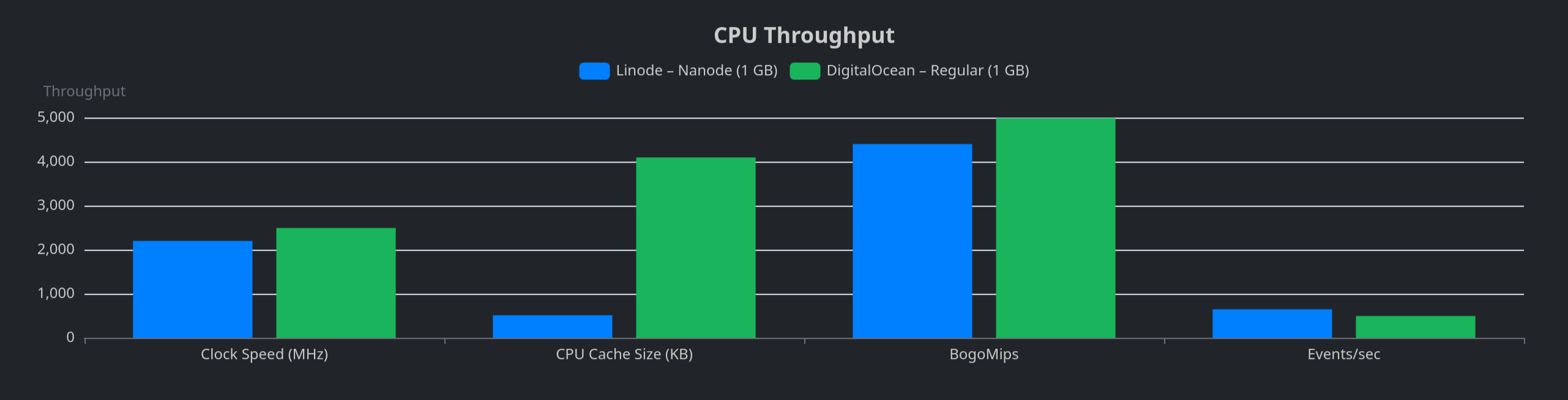 Comparing the pricing pages between Linode and Vultr doesn’t give you the full picture. The number of CPU cores are the same, amount of RAM is the same, disk storage the same, and maybe the price is within $2 of each other. Do they actually perform the same when running your software though? That’s what VPS Showdown can help you answer.